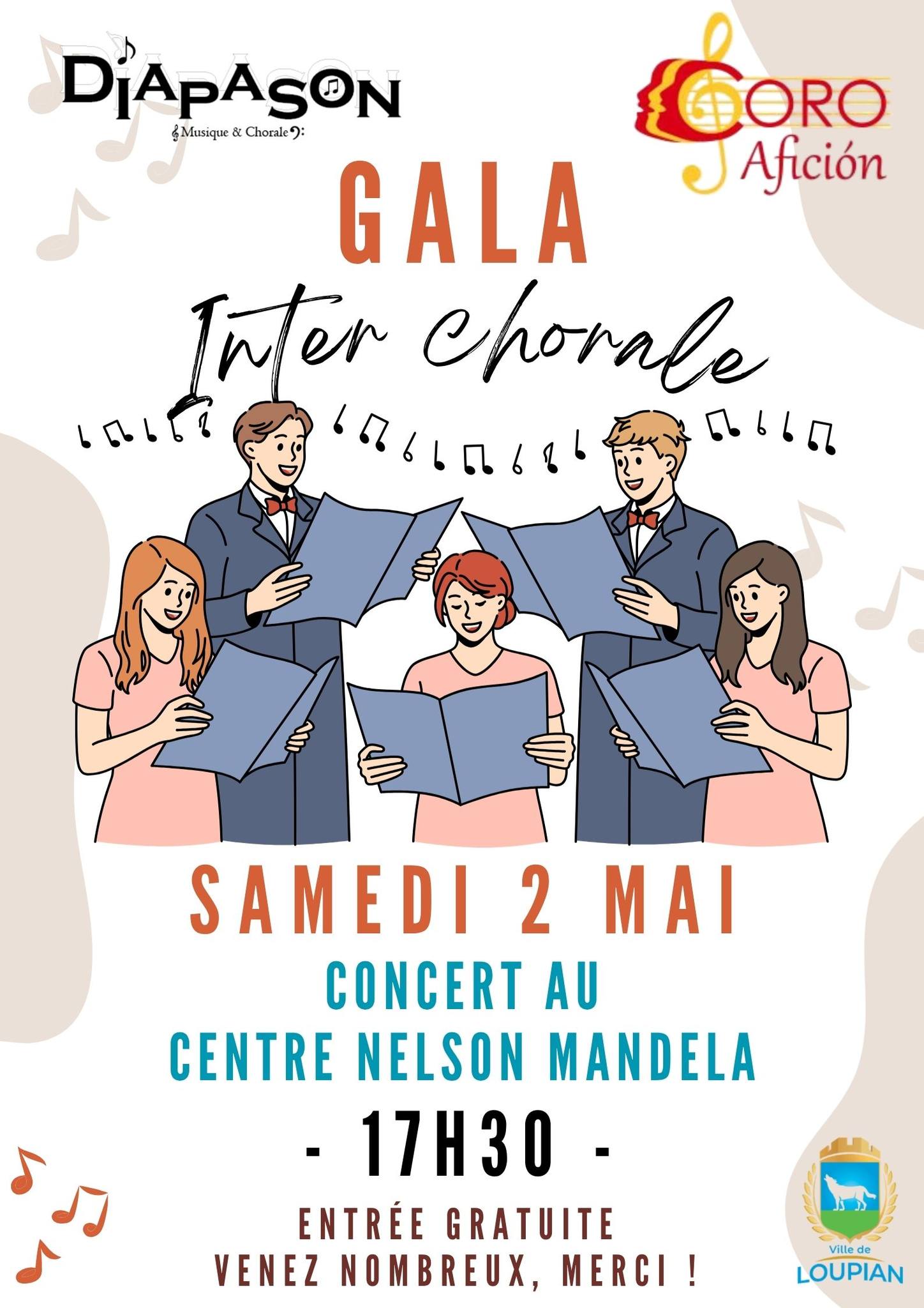 Le samedi 2 mai 2026 à 17h30, deux chorales unissent leurs voix pour un concert inter-chorale exceptionnel au Centre Nelson Mandela (Rue Nelson Mandela, à Loupian).