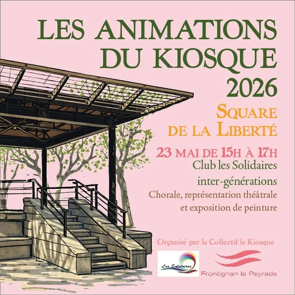 Le Collectif le Kiosque vous donne rendez-vous pour sa deuxième édition des Animations du Kiosque, un après-midi festif et convivial au cœur de Frontignan la Peyrade. Ce collectif, né de la réunion de cinq associations locales — Club loisirs La Peyrade, Solidaires inter-générations, Club 40, Angie & co et Temps Jadis — a pour vocation de valoriser la culture associative locale à travers des animations ouvertes à tous, chaque mois.