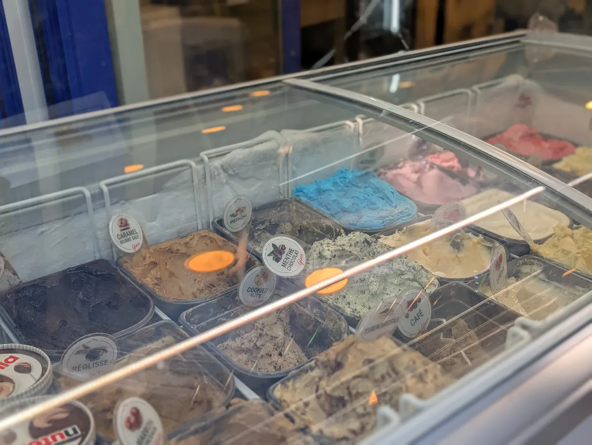 Le véritable atout de Blue Ladies réside dans sa sélection de glaces artisanales aux saveurs créatives et originales. L’équipe d’Ici7 a été impressionnée par la diversité des parfums proposés : des classiques revisités comme le cookies ou la réglisse, aux créations plus audacieuses comme la glace bleue qui fait écho au nom de l’établissement. La vitrine réfrigérée dévoile un véritable arc-en-ciel de saveurs, toutes sélectionnées avec un souci de qualité évident.