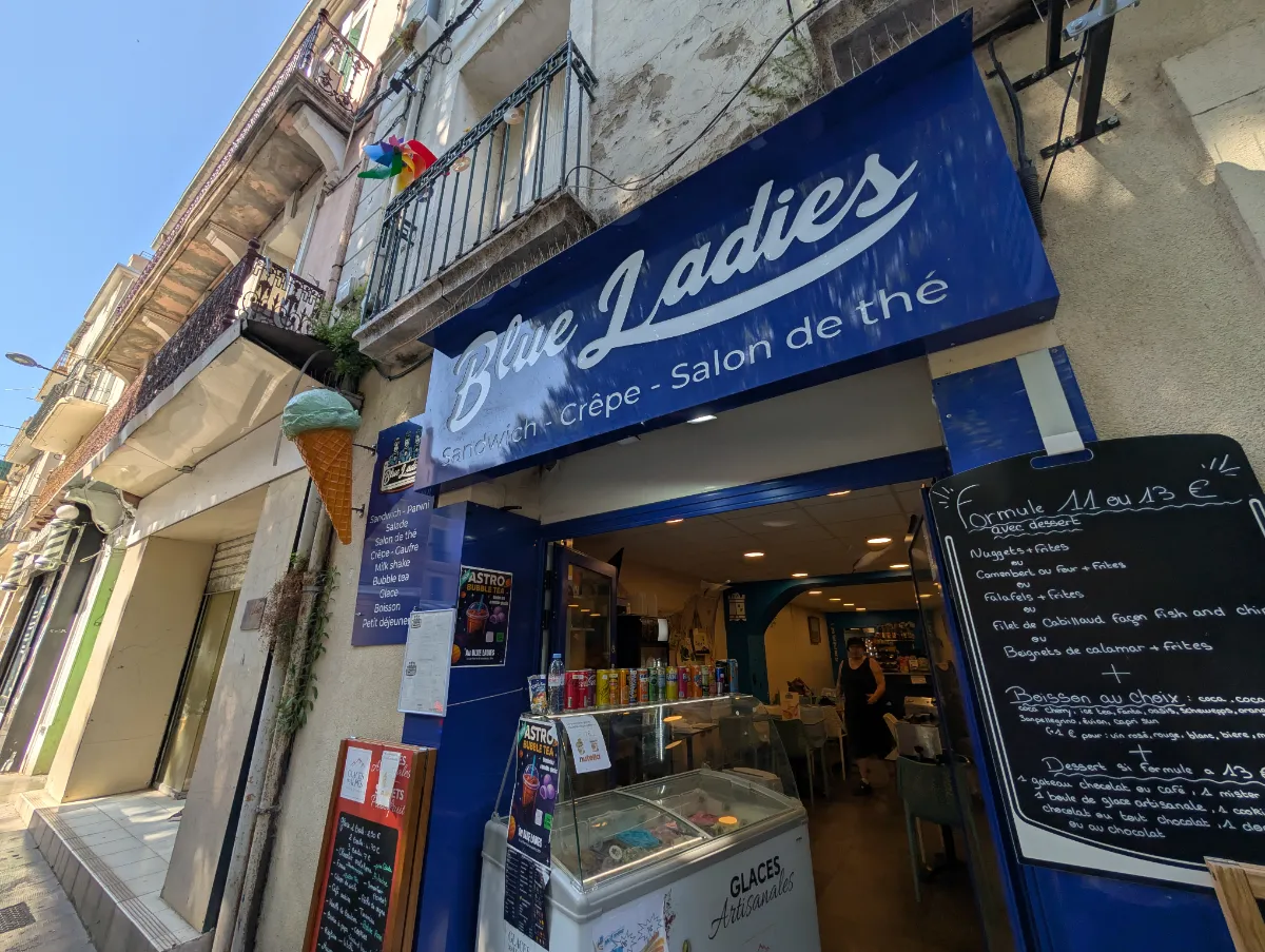 L’ambiance colorée et moderne de Blue Ladies tranche avec les codes traditionnels du centre historique sétois. Cette originalité assumée, symbolisée par l’imposant cornet de glace géant en devanture, attire autant les habitants que les visiteurs en quête de nouveautés. L’emplacement privilégié près de la mairie en fait une étape naturelle lors d’une balade dans le centre-ville.