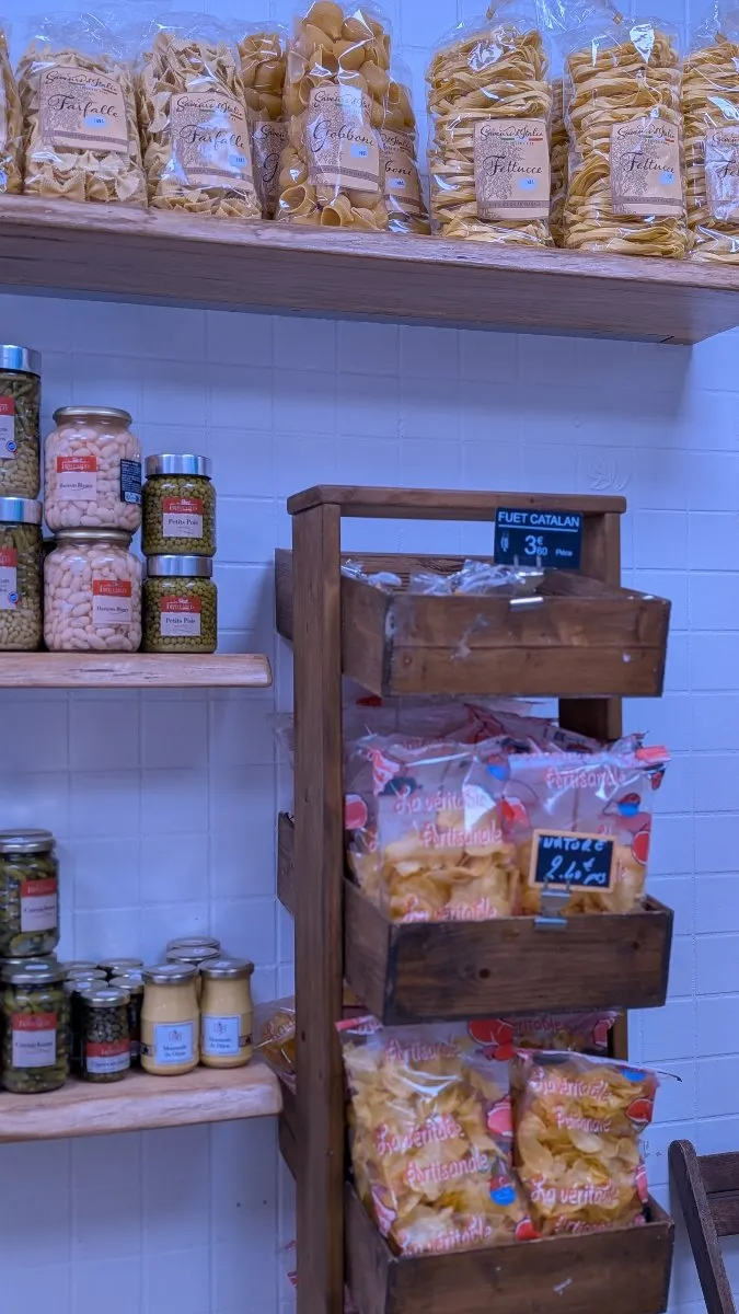 Un espace d’épicerie complète l’offre, avec des conserves de qualité (légumes en bocaux «Les Impeccables», lentilles, condiments…) et une affiche jambon de Jabugo qui témoigne du positionnement haut de gamme de la maison. Tout ce qu’il faut pour composer un beau repas sans multiplier les arrêts.