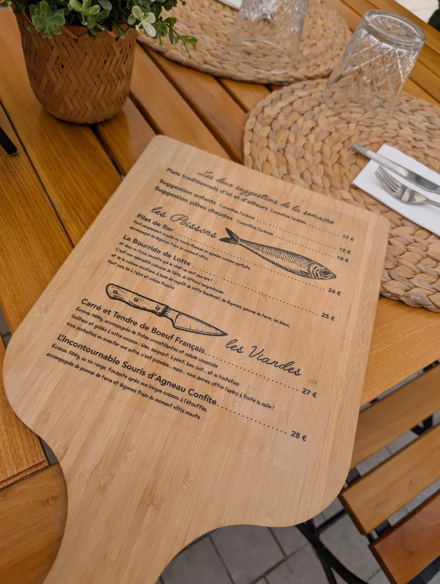La carte, volontairement réduite, garantit fraîcheur et qualité. Chaque plat est préparé maison, avec des ingrédients soigneusement sélectionnés. Parmi les spécialités : la bourride sétoise, le loup aux légumes croquants, la lotte fondante ou encore le tartare de saumon. À l’apéritif, les frites à la crème d’ail ravissent les papilles. Pour le dessert, l’incontournable baba au rhum fait l’unanimité.