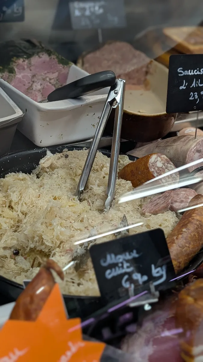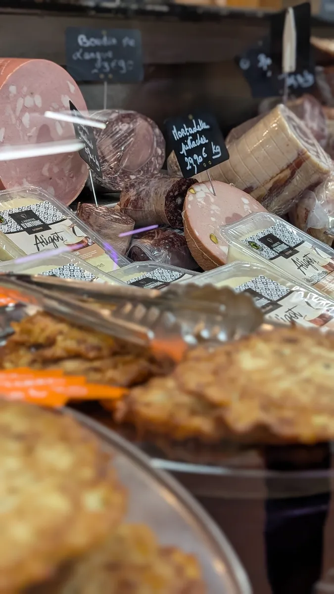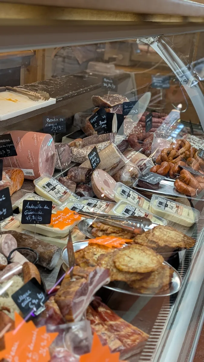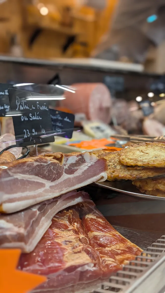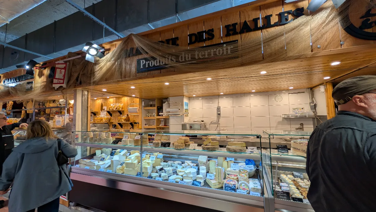 Ce qui nous séduit chez la Fromagerie & Charcuterie des Halles, c’est cette atmosphère chaleureuse typique des marchés couverts. Les ardoises avec les prix écrits à la main, les pinces et ustensiles qui attendent d’être utilisés, tout respire l’authenticité. Nous sentons que derrière ce comptoir, il y a une vraie passion pour les produits et une envie de transmettre ce goût du bien manger.