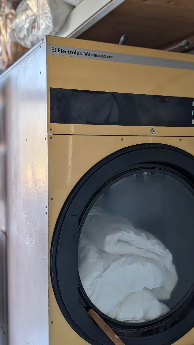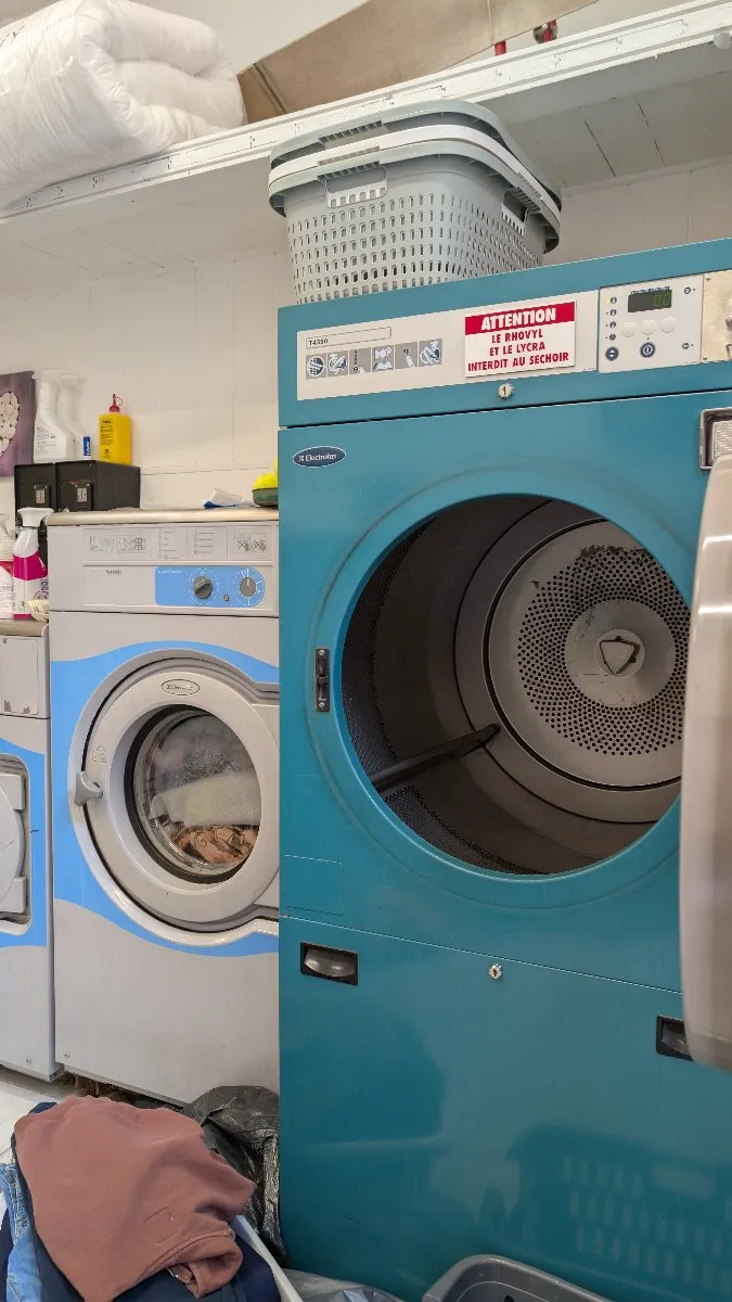 L’établissement dispose de machines à laver de 7 et 15 kg, ainsi que de sèchoirs rapides. Le lavage est effectué en eau adoucie pour préserver le linge.