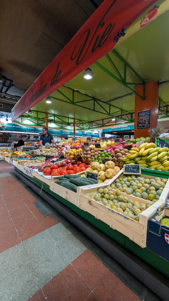 L’atmosphère du Jardin de Vie reflète celle des Halles de Sète : chaleureuse, vivante et conviviale. Nous avons apprécié cette ambiance de marché traditionnel où l’on prend le temps de choisir ses produits, de demander conseil, et de repartir avec un panier rempli de bonnes choses. Les ardoises manuscrites avec les prix, les cagettes empilées, et la présence attentive des commerçants créent une atmosphère authentique que nous aimons retrouver.