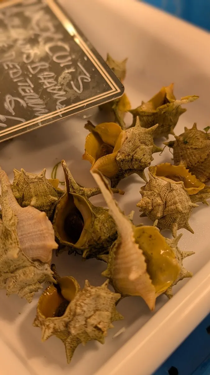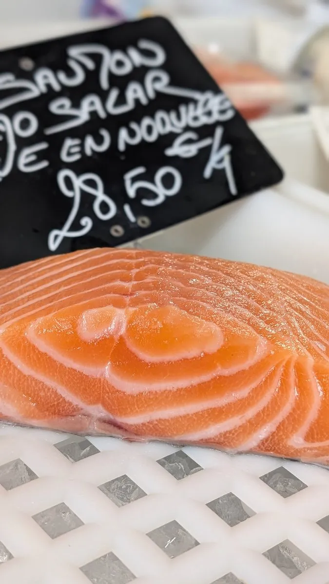 La spécialité maison, ce sont les huîtres creuses Magallana Gigas élevées à Bouzigues, proposées en différents calibres et qualités — dont des spéciales. Mais l’Épicerie Marine, c’est aussi tout un éventail de produits frais : moules de Méditerranée, palourdes, murex de mer, poivres d’étang, bulots, crevettes, pince de tourteau, et des poissons nobles comme la joue de lotte, le saku de thon albacore grade sashimi, le pavé de saumon ou encore le dos de cabillaud. Les étiquettes sont précises, les origines affichées : une transparence qui dit tout du sérieux de la maison.